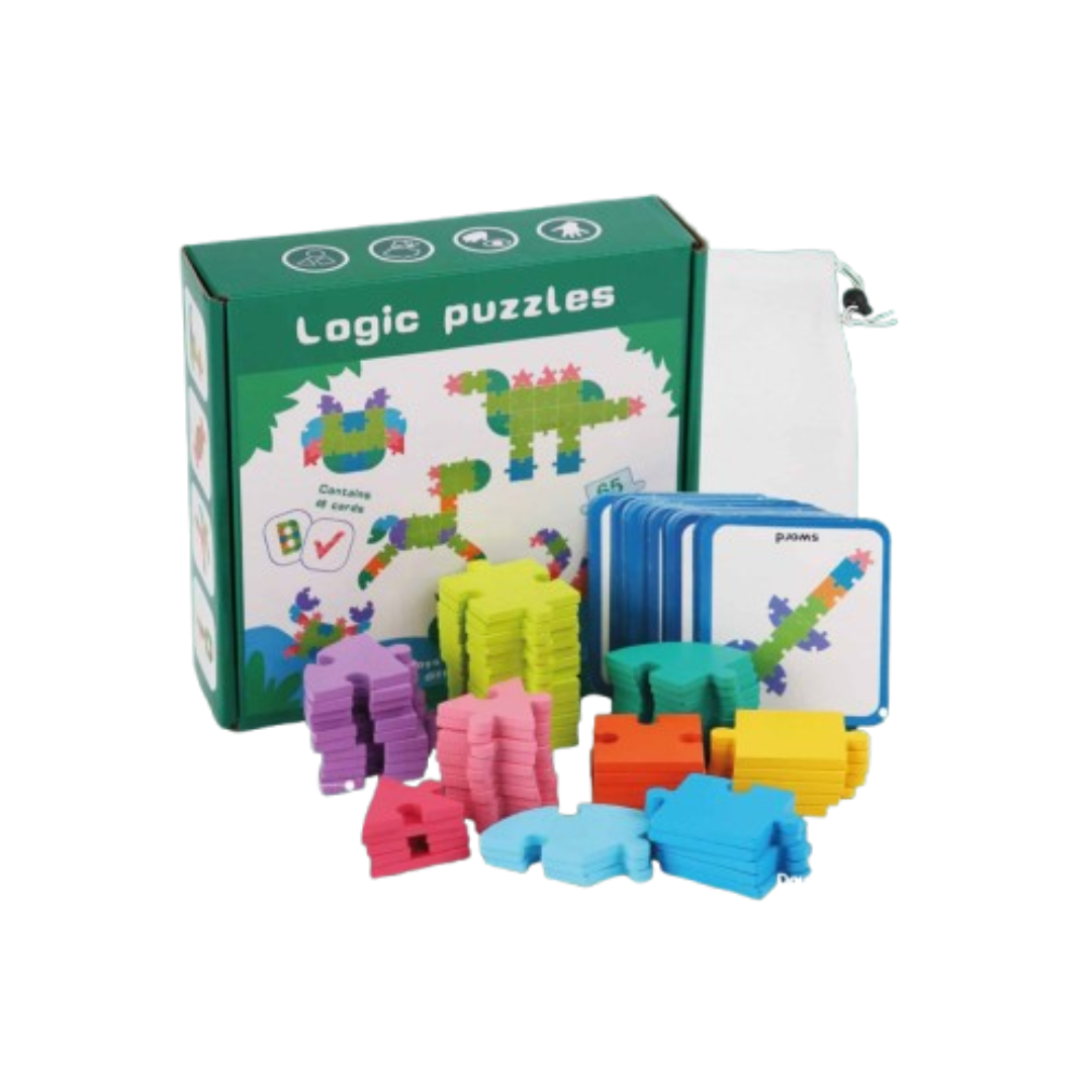 Offrez à votre enfant un casse-tête en bois de 65 pièces conçu pour stimuler son intelligence tout en s’amusant. Ce puzzle éducatif permet d’apprendre facilement les formes géométriques, les chiffres et les lettres, grâce à ses 48 cartes modèles incluses.