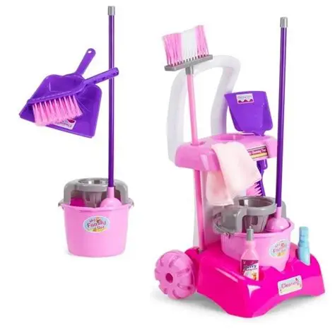 Offrez lui offrant sont propre caddie / chariot de ménage avec tous les éléments nécessaire pour se mettre dans la peau de celui qui fait le nettoyage.
