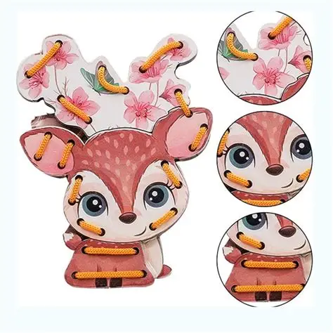 Jouet éducatifs d’animaux sous forme de gazelle à enfiler pour développer la motricité fine et la coordination visuelle des enfants.