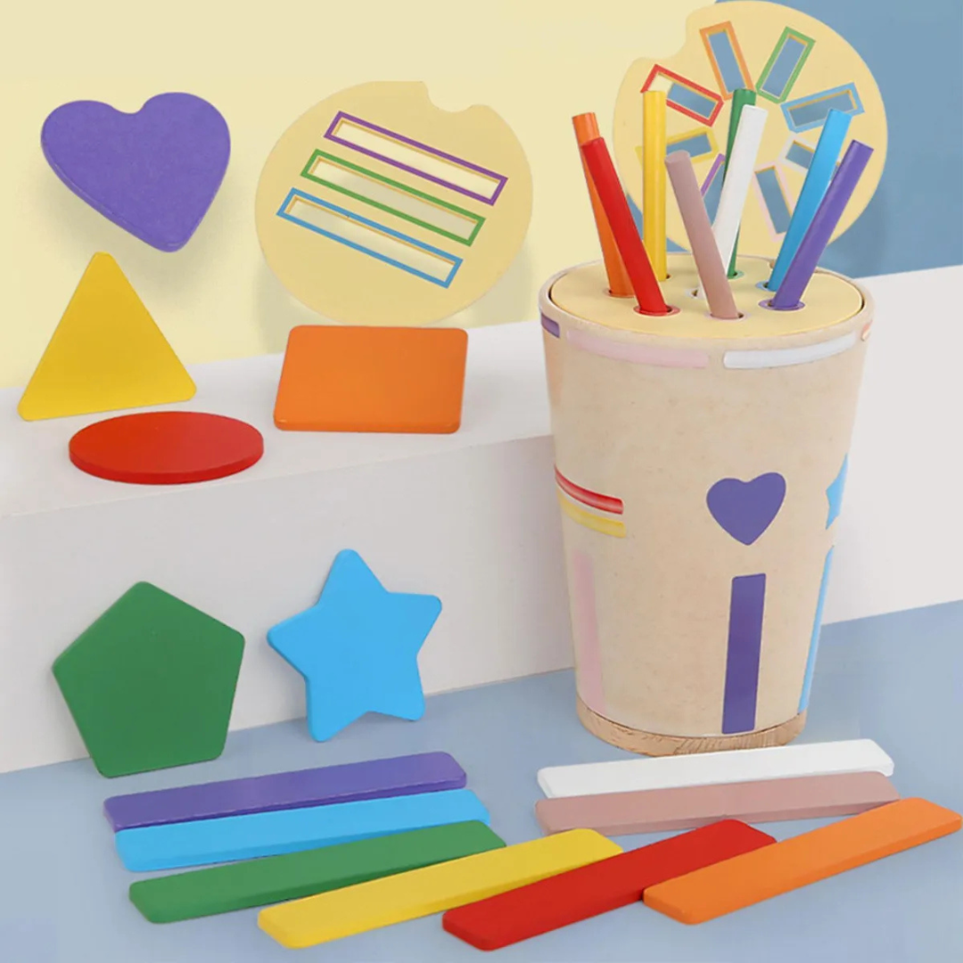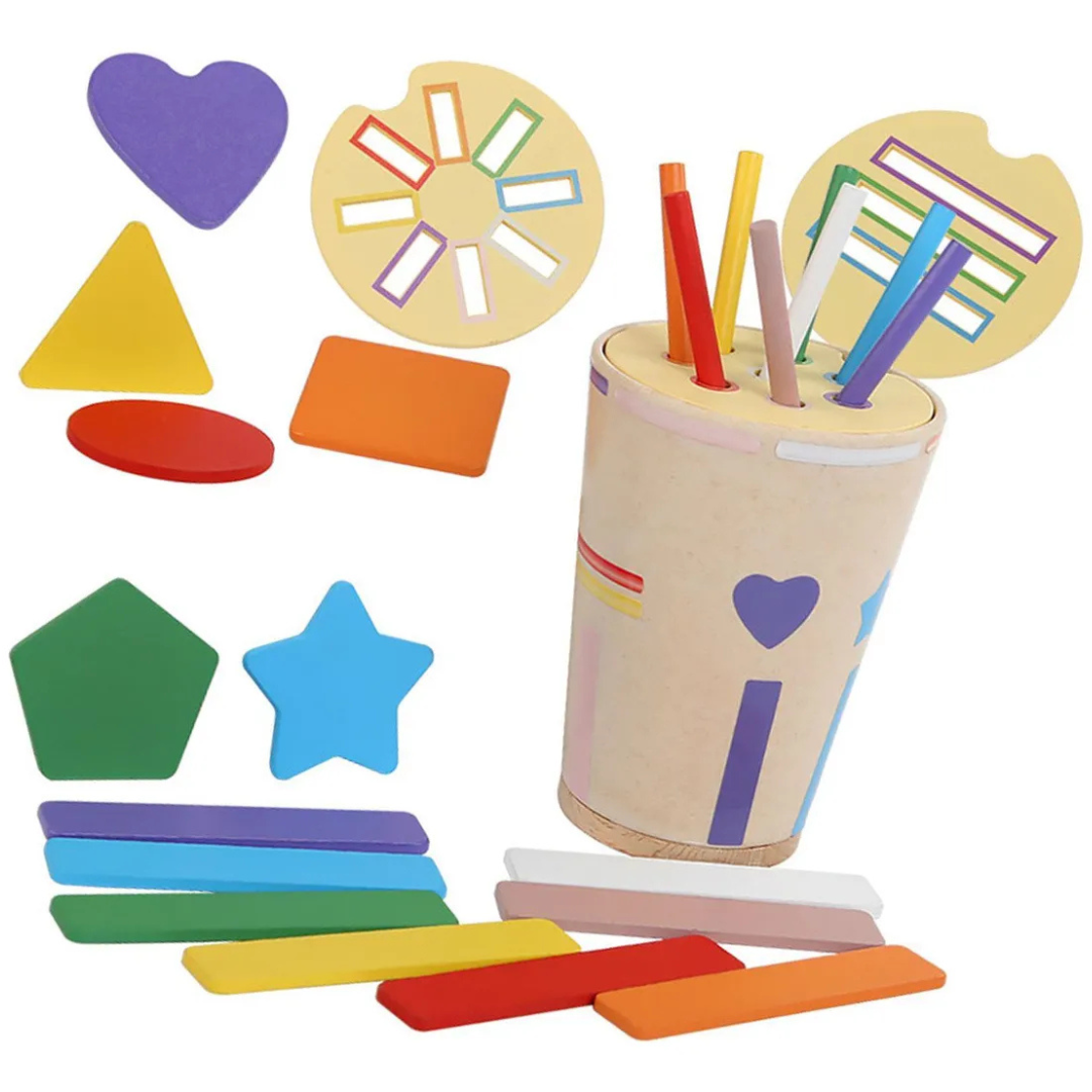 Jeu Montessori de Tri des Formes et des Couleurs – Avec Cartes et Blocs en Bois