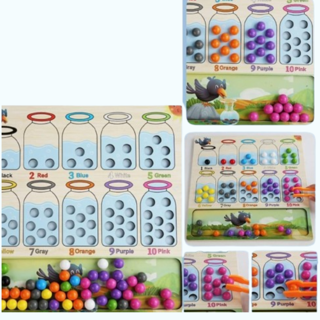 Le jeu Montessori de tri et de transvasement est une activité éducative inspirée par les principes de Maria Montessori, qui aide les enfants à développer des compétences essentielles. Grâce à l’utilisation de la pince, les enfants apprennent à trier des perles de différentes formes et couleurs, ce qui favorise non seulement leur motricité fine, mais aussi leur concentration et leur sens de l’observation. Ainsi, ce jeu constitue une base solide pour le développement de compétences cognitives. Découvrez nos autres jeux Montessori ici pour enrichir l’apprentissage.